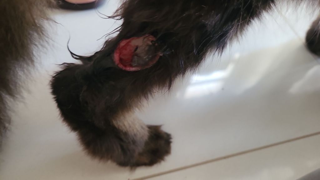 Isso causou-lhe dor e passou a mancar, sem poder tocar a pata no chão.