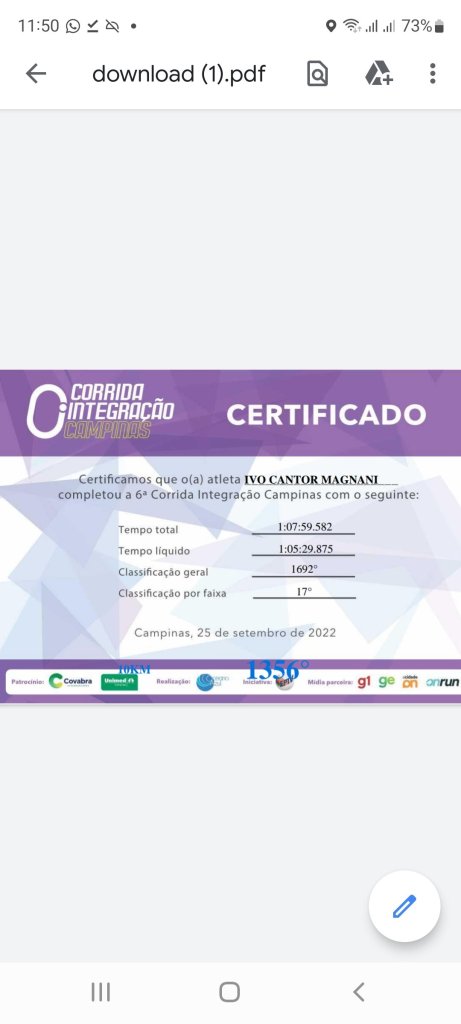 Escrevo e mando fotos para meus amigos, comemorando mais uma prova bem sucedida. Foram 10km vencidos em 01:05:28 e fui o 17o. colocado na categoria 70-74, um bom resultado para minha idade.