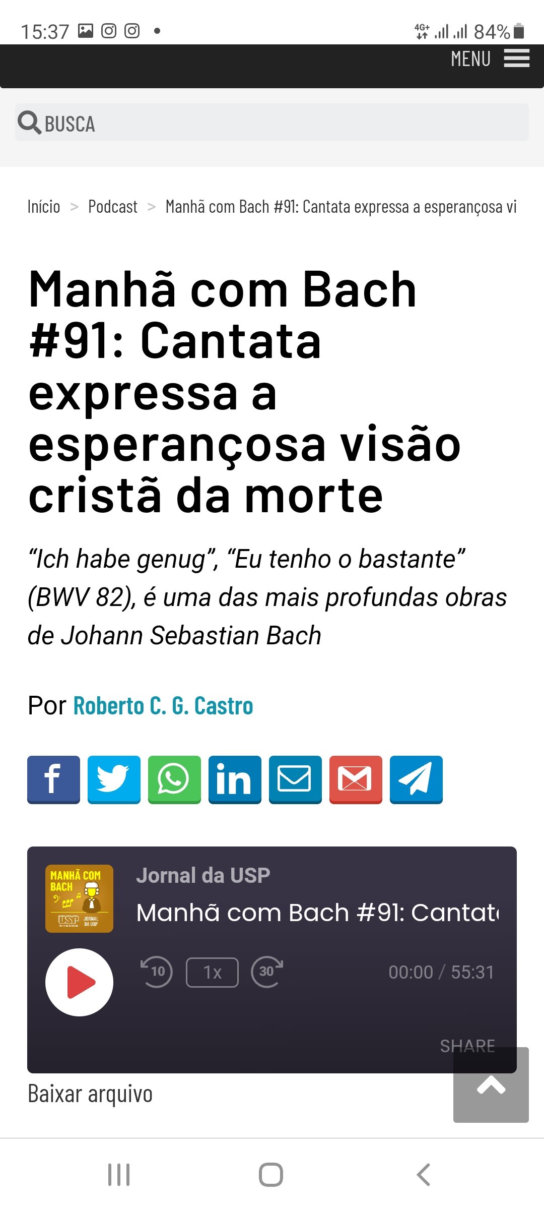 Agora bateu o cansaço de ontem e hoje. As duas saíram para uma volta na rua e eu descanso ouvindo Ich habe genug, de Bach.