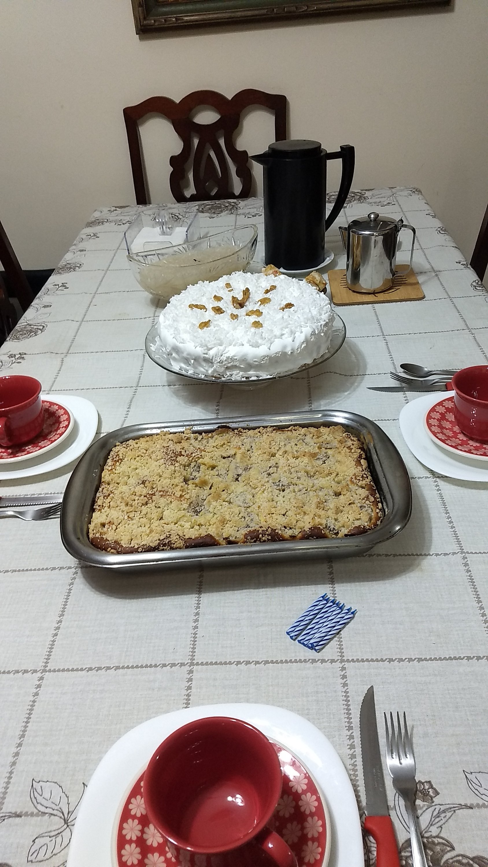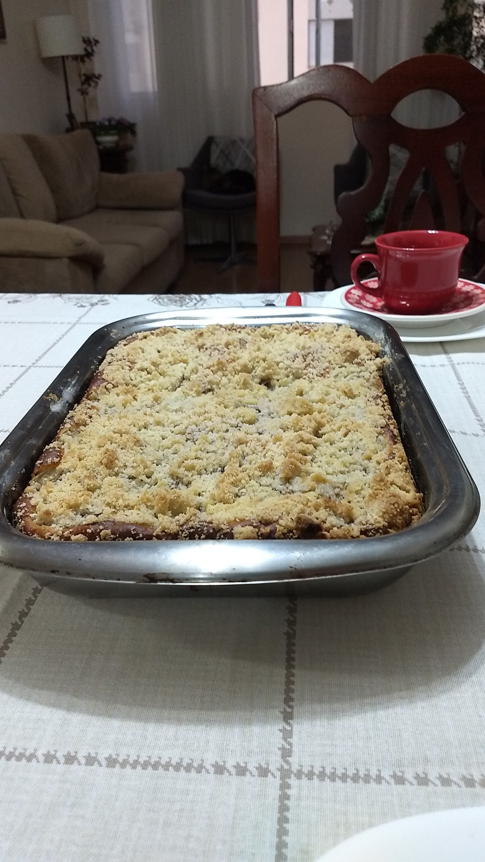 Pedi de almoço e dona S fez: pierogi e platzka. Para o café da tarde, quando sair daqui, cuque.